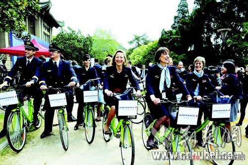 正值武汉至巴黎国际直航航线开通之际,昨日上午,法国航空公司向武汉大学捐赠300辆自行车,通过大学生将环保的理念传播开去。