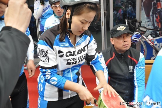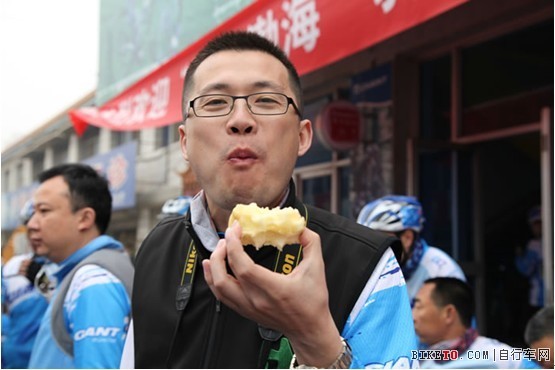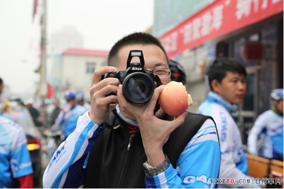 吃果照相两不误,这美女车友给的苹果就是好吃,一会儿就啃完了,哈哈