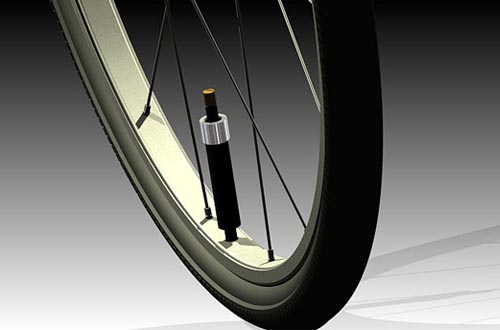 这是由美国PUMP TIRE Team研发的自动充气的自行车轮胎,它可以让你边骑边充气。轮胎包含了三个部分,包括外胎、开闭式阀门以及内胎,与一般轮胎不同之处在于其外胎部分多了一圈细小的管子,当装置于轮胎上的胎压计侦测到胎压不足时,就会把轮胎中的阀门开启,透过空气进入外胎的小管子,在利用车辆行走时的重量将空气挤到内胎中,而当胎压足够时,阀门将会自动关闭。同时使用者能够透过车外的胎压计来设定在多少胎压以下进行自动充气,以下是视频: