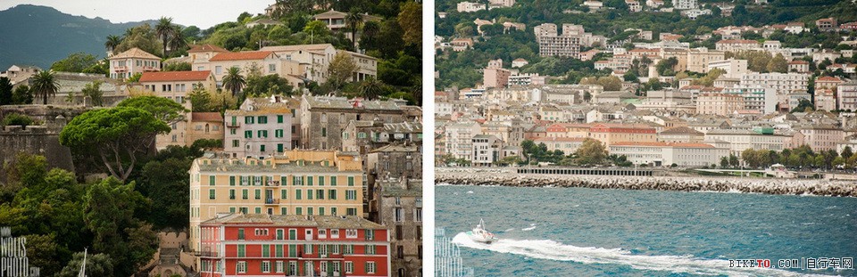 科西嘉岛,从渡船上看,似是会给我们一个美好的旅程地方。远远看着山城,在船上我们已经计划好我们第一趟下坡路的路线了。