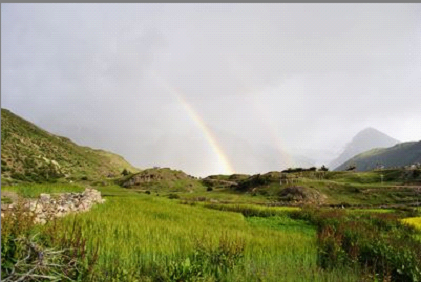 刚进客栈没多久,一场大雨后就出现了双彩虹