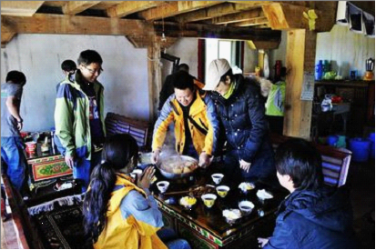 雨停后,就和同事去了几家来古村民家,回到客栈时,发现又有几个慕名而来的驴友,大家正忙碌的帮着一起准备晚饭