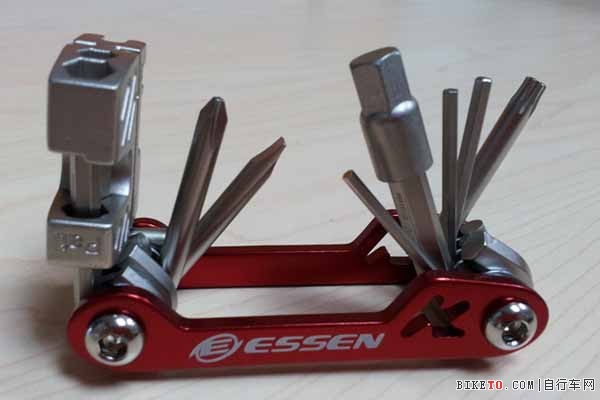 铝合金2/3/4/5/6MM六角板手,T25星形板手,十字/一字螺丝起子,开口板手,轮圈辐条工具,18功能;带拆链器,铬钒钢材质,表面镀镍。