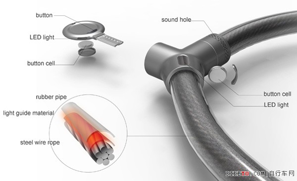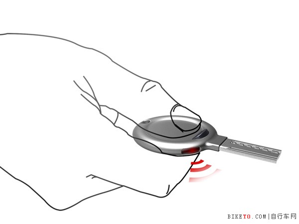 钥匙上有一个无线电波发射器,锁上有一个无线电接收器,当使用者按下钥匙时,车锁会发出尖叫,并打 开LED灯,即便是在黑暗的环境里也能很快找到自行车。它曾获得 2012 Design Talents (设计天才)大奖。