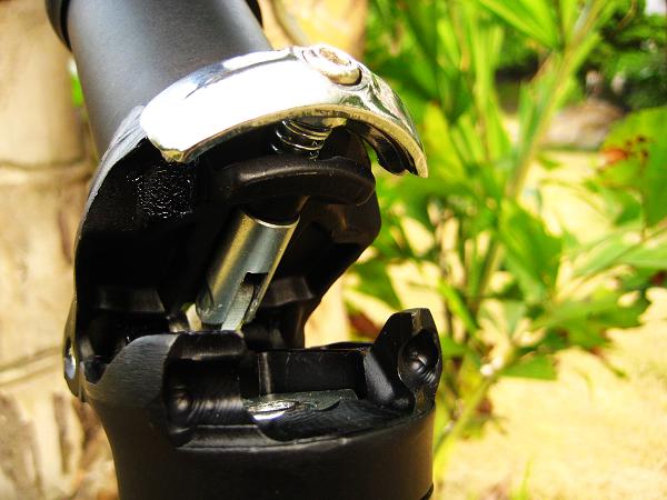 下图为欧亚马RX1折叠车的头管折叠腔,同样采用了错位结构,轻轻一锁,RX1的头管结合就结合得非常紧密,让人信心大大提高。