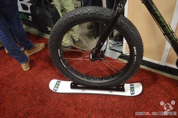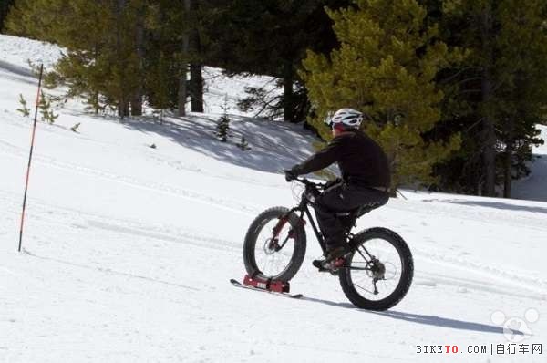 近几年来,很多人尝试设计适合在雪地或冰上骑行的自行车。一家新兴的科罗拉多 BikeBoard 装备公司想到研发出一种在前轮装上滑雪板的大轮胎自行车,这样用户可以顺利在雪中骑行。前轮的滑雪板使自行车保持在厚厚的积雪上,滑雪板上还有金属边牵引。这样即使下大雪,用户也可以顺利骑车出游。