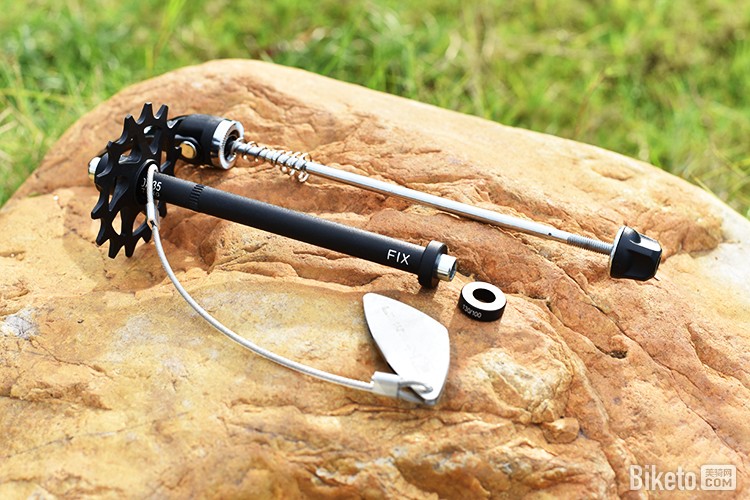 前叉固定器开档为100mm,轴心为最普通的9mm快拆,是主流的公路车/山地车前叉规格,并且附带有卡钳垫片,避免搬运时误压油压碟刹造成来令片卡死的悲剧发生。 如果用于公路车,可以用六角扳手拧开轴心并把垫片拆除。