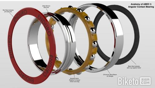 传统的承轴是沿着径向运转的,如果用这样的承轴用做中轴,我们是无法接受的。车手在骑车或者摇车时,有更多的动力来自承轴的左右两边,而传统的轴承会产生力扭曲--即向外或者向内的压迫力影响了滚珠与外围的合力运转,结果不仅无法将车手的踩踏力完全发挥在驱动上,更导致了摩擦和损耗。所以ENDURO将XD-15的偏心轴技术下放到了钢珠系统,于是斜角中轴应运而生。