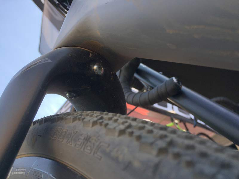 ▲前叉预留有挡泥板和货架的安装位(现在Gravel都要用货架这么高端了……)