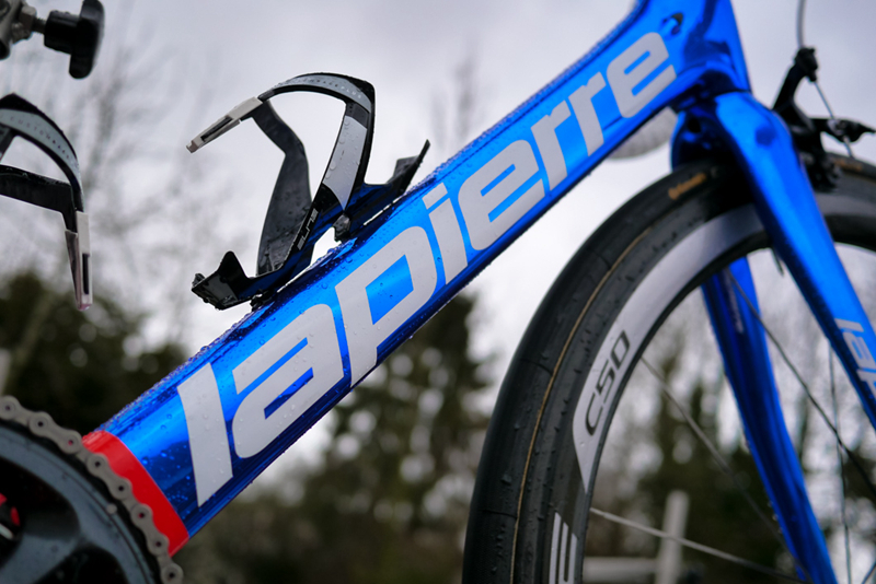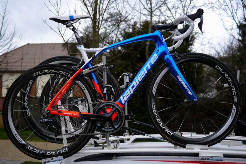 ▲FDJ车队的“阿诺·德玛西亚”(德玛尔)拥有一辆订制的电镀“红白蓝胶袋色”Lapierre Pulsium。