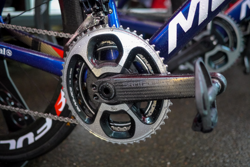 ▲巴林-美利达车队全部使用SRM自家曲柄的功率计牙盘(由THM代工)