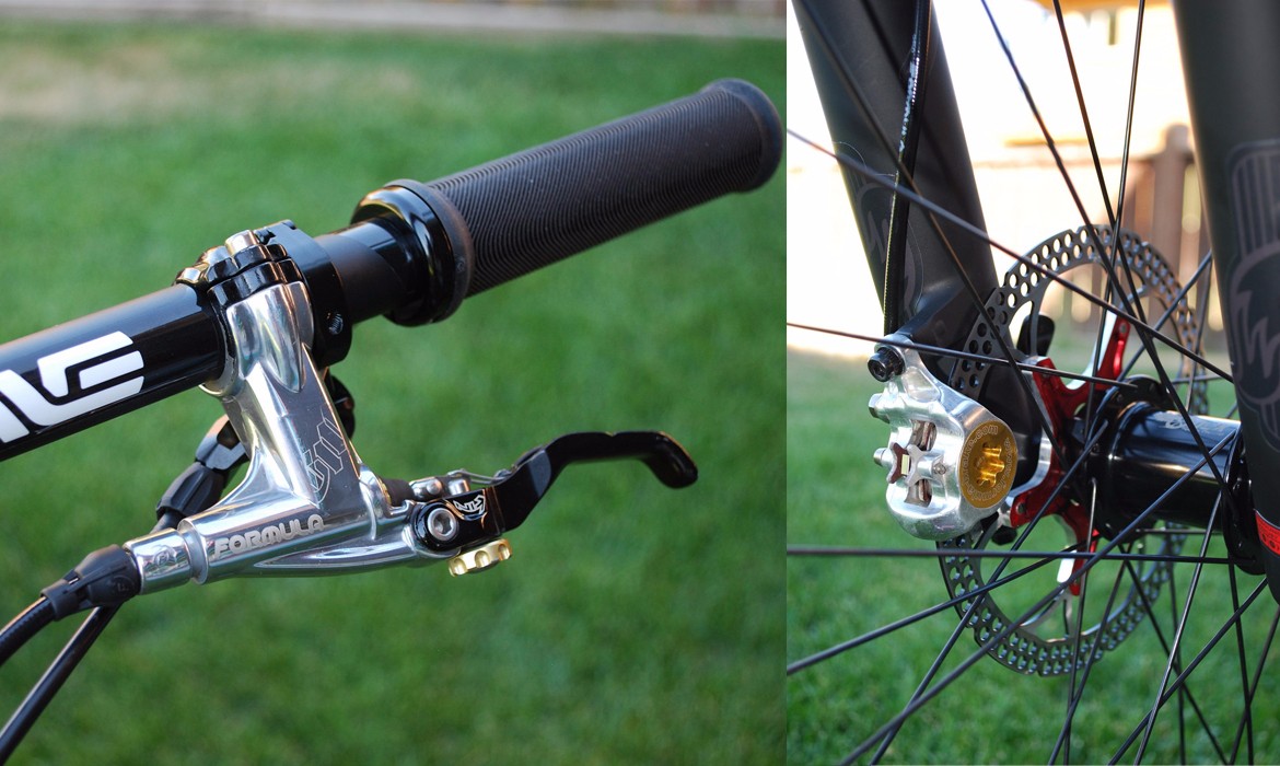 在刹车系统方面,车主别出心裁选用了08款Formula The One刹车,这款刹车虽然双活塞结构,但是两只24mm活塞足以满足Enduro以上车种使用要求,旧款Formula 刹车使用DOT刹车油具有硬朗刹车手感。