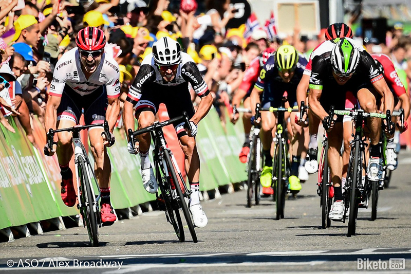 sunweb车队今年环法的表现可以说是出乎所有人的意料,太阳网车队在本届环法大赛共收获4个单站冠军以及环法爬坡王的圆点衫、环法冲刺王的绿衫。其中由法国选手巴吉尔在高山赛段赢得2个单站冠军以及收获圆点衫;澳大利亚选手马修斯冲得2个平路赛段的冠军以及收获绿衫。另外,巴吉尔还获得了本届环法超级敢斗奖的殊荣。(捷安特一定乐开了花~)