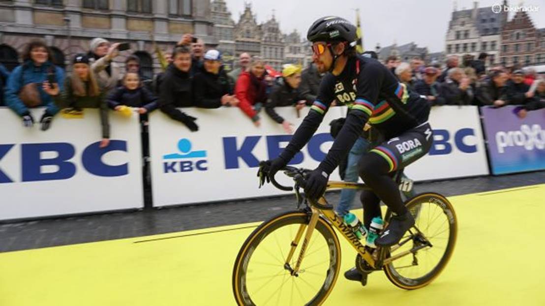 世界冠军萨甘骑着他的新款萨甘黄金收藏版S-Works Tarmac征战环弗兰德斯,然而并没能斗得过快步车队的车轮战
