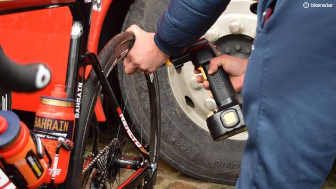 巴林美利达的技师也在使用电动数显气泵来给战车充气
