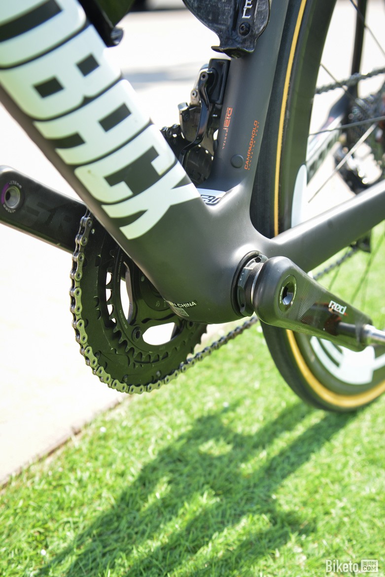 变速套件和零配件也充满美式风格——SRAM和HED都是美国品牌。那根后飘坐管被反向安装,使得车手更贴近TT姿势——这非常符合车主布兰登·麦克努尔蒂的身份。这个年仅20岁小将,曾在去年U23世锦赛ITT取得银牌。在早期的环迪拜第四赛段,他的单飞则与胜利咫尺之遥。