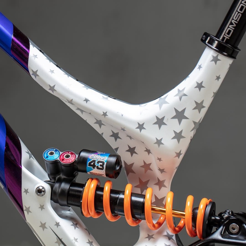 ▲上管也有渐变色条涂装加成,Troy Lee Designs