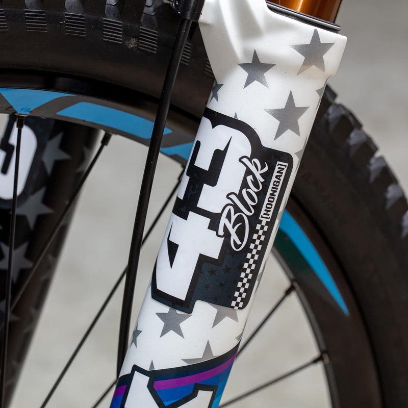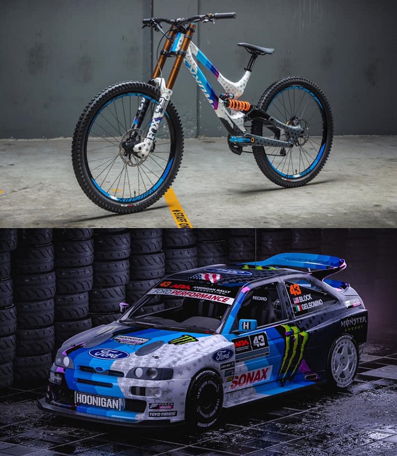 据悉,本次砖叔的Specialized Demo 8定制涂装参照Ken Block新赛季战车福特Escort RS Cosworth V2设计,与Troy Lee Designs联手打造,Ken Block战车由大名鼎鼎的设计大师Ash Thorp亲自操刀设计(他曾参与攻壳机动队、X战警、刺客信条等电影设计,汽车涂装设计只是他的业余爱好之一)。因此在Demo 8涂装上拥有和福特Escort RS Cosworth V2同样狂野的竞赛基因。