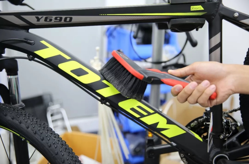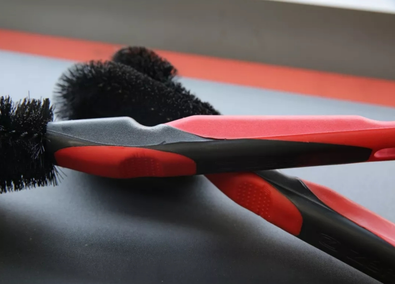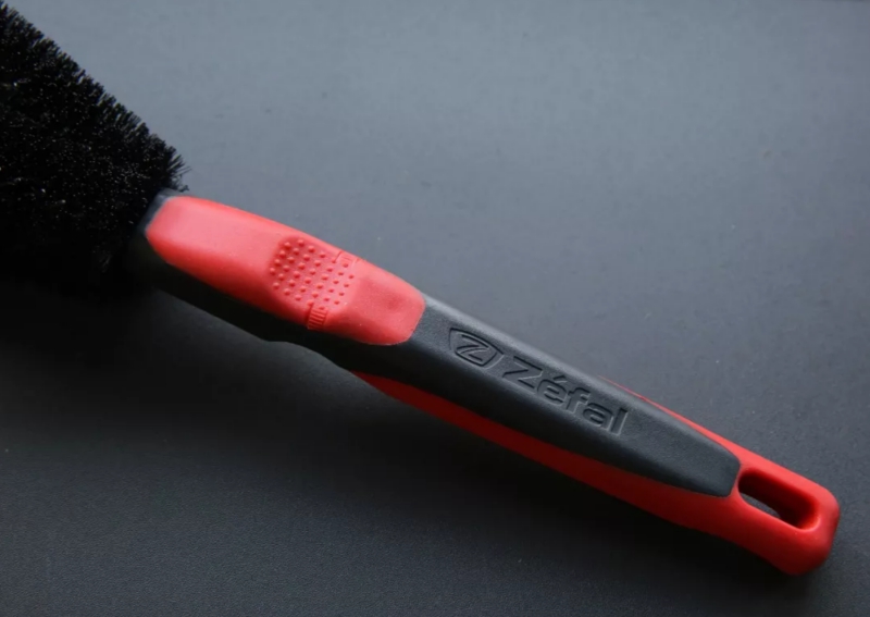 这个刷毛顶端贴心的做了打毛处理,是相对柔软的,所以适合用来清洁车架、前叉、轮组等,不会划伤车架。刷子外圈也包了一层软软的塑料,即使清洁时候磕到车架也不用担心磕伤。