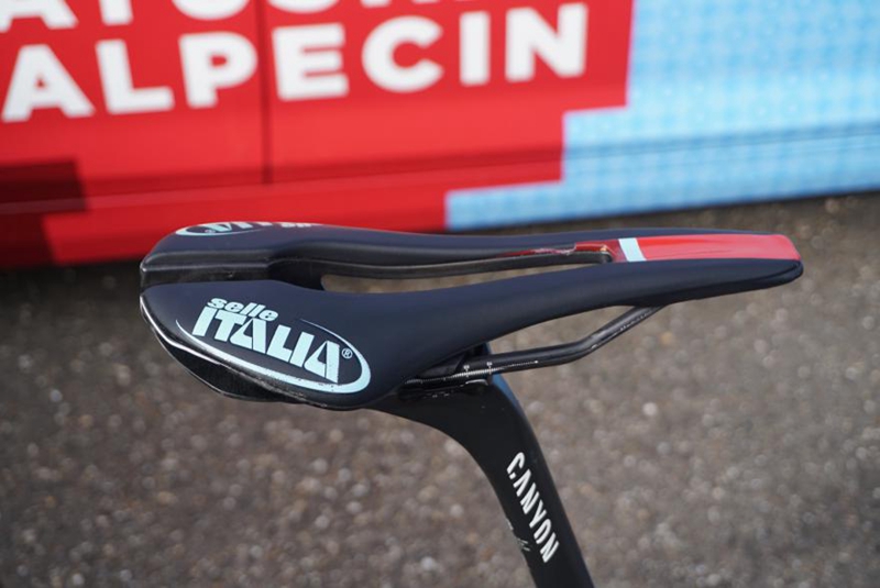 多塞特选择了Selle Italia SP-01 KIT Carbonio Superflow坐垫。这个相当不寻常的坐垫特征在于,坐垫的两侧仅在鼻头处连接,两侧可以独立形变。这可以提供更多的舒适性和压力缓解,在漫长的大环赛中非常有用。