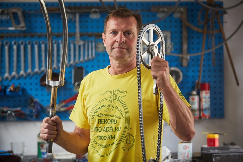 今年54岁的Vladimír Vidim是个富有激情的车手,他在布拉格北部的罗兹托基拥有一间自行车工作室。早在社会主义年代(捷克斯洛伐克时期),Vidim就是个车手。苦于当时没有高品质的自行车,Vidim便开始自己造车。他曾复刻过很多经典车型,其中的老式自行车就有draisine、boneshaker以及penny-farthing,Vidim还用它们创下了不少记录。但这次复刻SLAVIA,Vidim却遇到了难题——他根本无法找到原型车。
