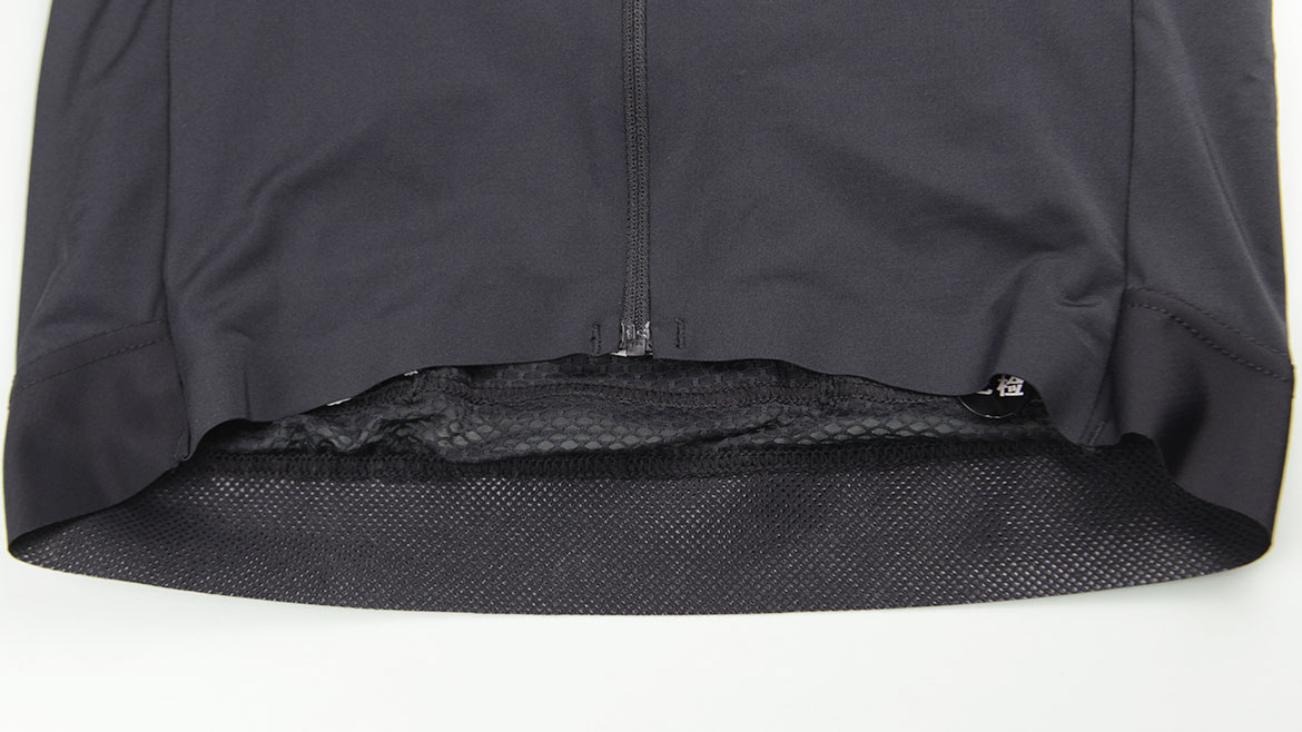 下摆的设计十分眼熟,基本上和Rapha Pro Team Aero的设计类似,诶,同志们不要以为我在谴责NEZA“抄袭”,我认为一些好的设计、成熟的设计,只要没有专利问题,拿来借鉴是没有问题的。前摆的粘合设计,避免了难看且显得廉价的缝线外露,下摆的宽条刷胶防滑条,弹性十足,并且面积宽大,这就是很好且很实用的设计,没什么问题这条就过了。