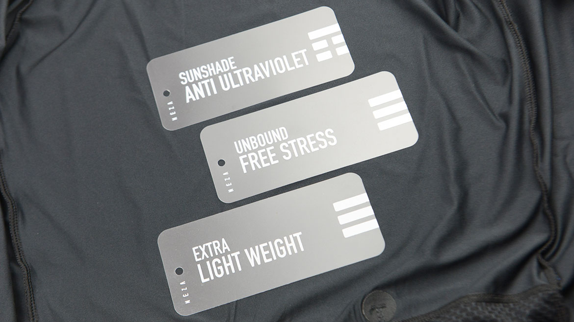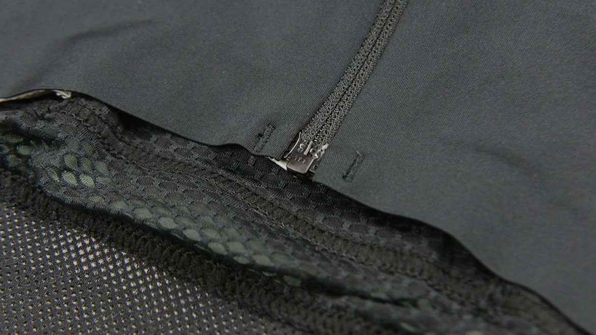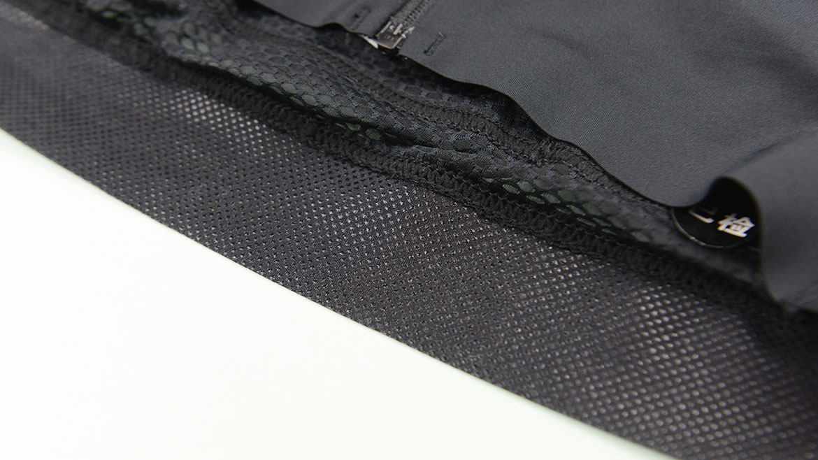 袖口一侧设计有三道白杠,这可不是阿迪达斯,这三道白杠设计取材于中国传统八卦元素,也算是在一个侧面反映了NEZA对中式元素的发掘,挺好的。袖口采用了贴合的工艺,更加平整,比我那些传统骑行服袖口(缝线包边)显得更有档次,也比那些纯粹功能性袖口(刷胶、松紧带)显得更加简练。