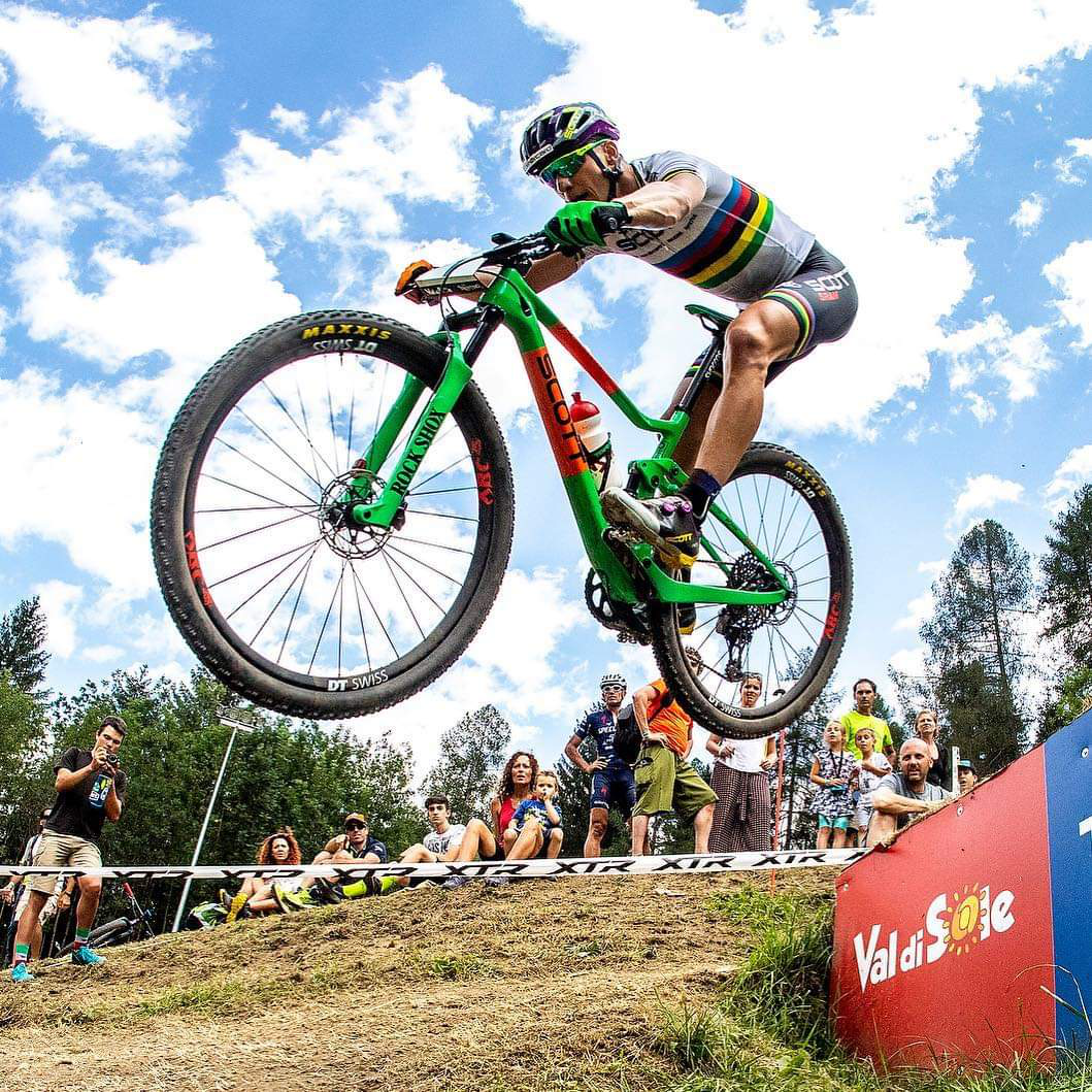 2018年山地车世界锦标赛上,尼诺使用了瑞士国旗配色的涂装来代表国家出战。