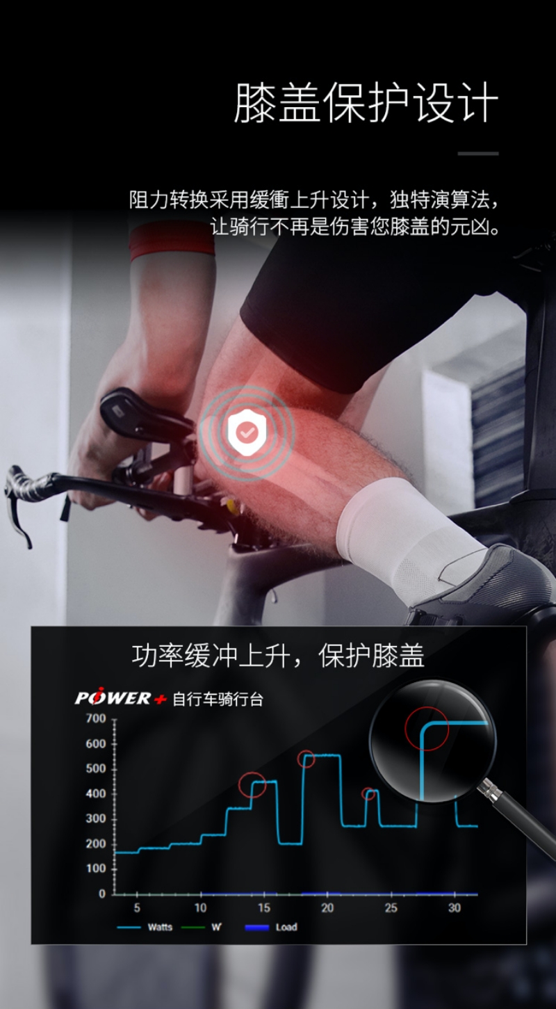 加能骑行台加入了阻力缓冲设计,阻力不会突然增加,而是缓慢上升,让膝盖没有顿挫感,骑行更加舒适健康。