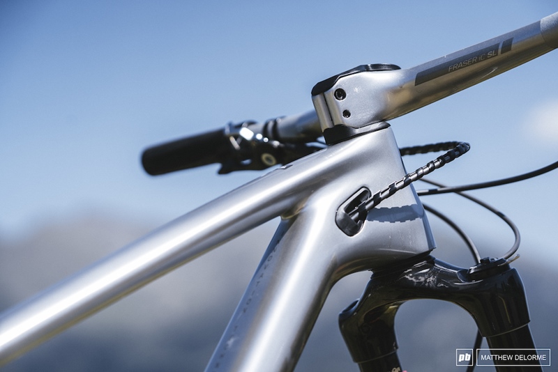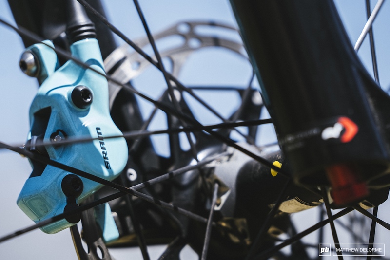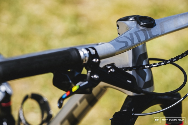 Syncros Fraser IC SL 一体式集成操控把组,车把680mm, -25°,重量仅有220克,非常轻。Sram Level Ultimate制动系统。