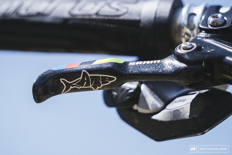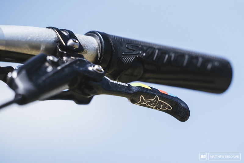 ▲定制涂装的“Kate大鲨鱼”刹车手柄