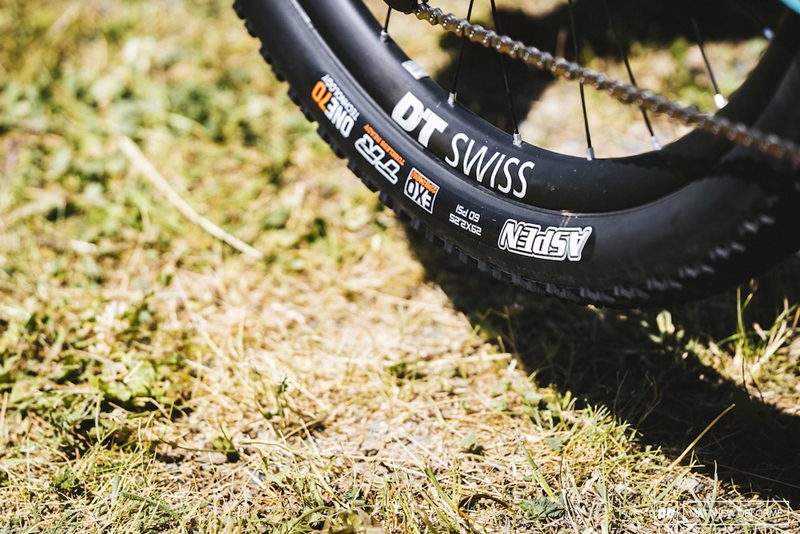 内宽30mm的DT Swiss XRC 1200 Spline轮组装备Maxxis Aspen外胎。
