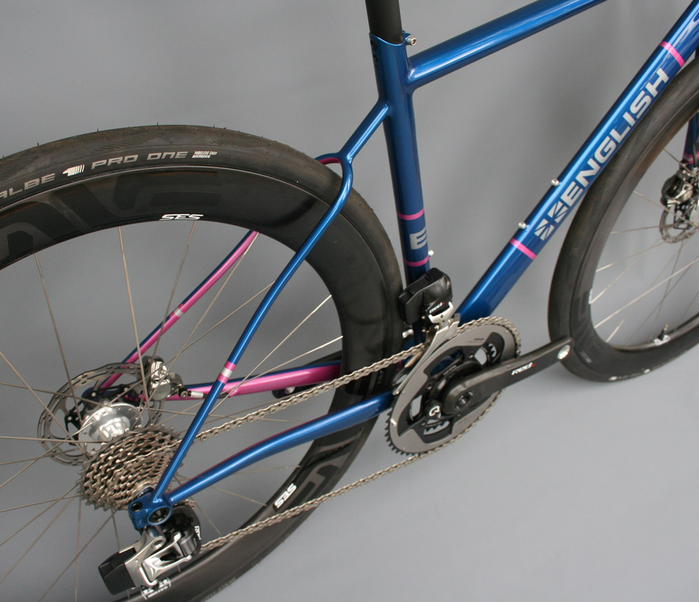 English Cycles的定制费用为$3200起,可选项有一体座管(钢$600、碳$1200)、内走线($100)、喷漆涂装($400)。