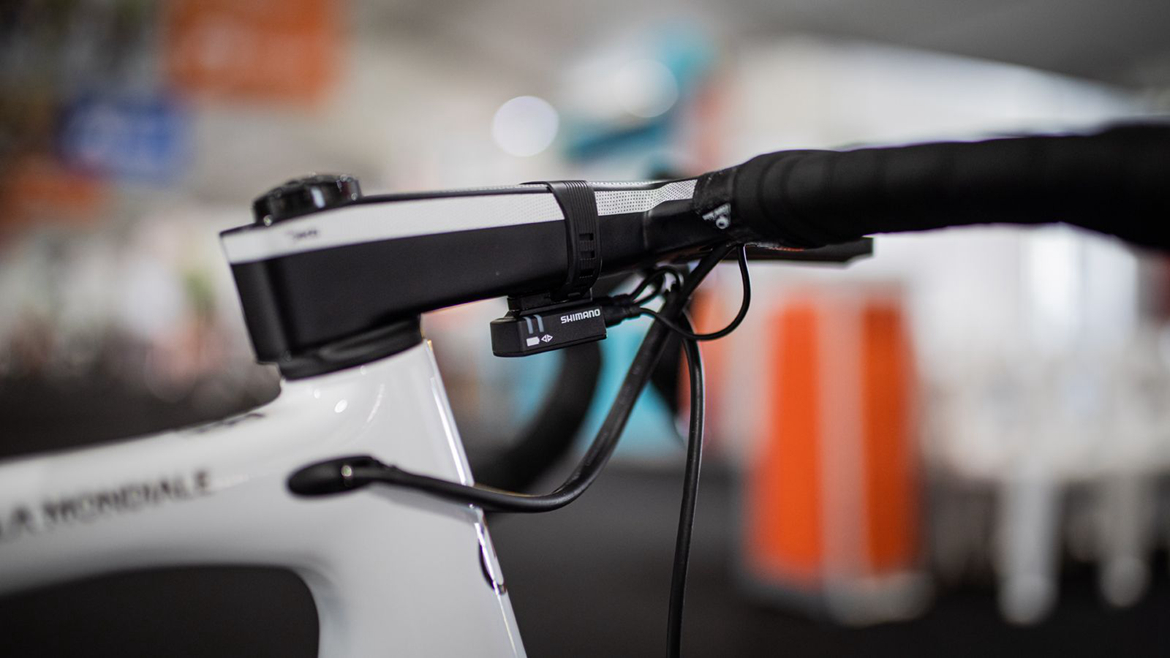 ▲尽管使用了一体把,但EW90接线器还吊在把立下面