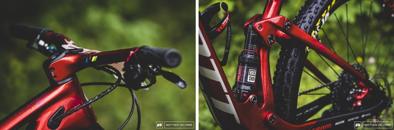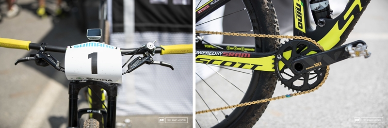 尼诺·舒尔特在山地世锦赛中特别换上极具瑞士风格的红白定制涂装,Syncros Fraser iC SL 一体化把组,白色的XX1曲柄,在当时都成为车友茶余饭后的谈资。