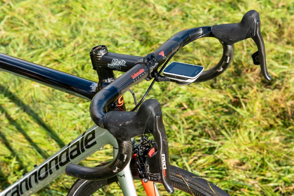 Andrew今年改用42cm的弯把,因为他觉得这个宽度摇车更舒服,而上年它使用的是38cm宽的弯把。安装的Alpitude Stelvio佳明码表座仅重15g。