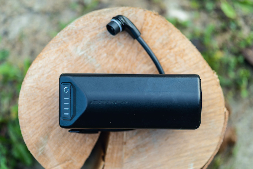 电池部分是Orbea的360Wh定制版,并可将252Wh的额外扩展水壶电池安装在水壶架中,从而使电池总容量达到612Wh。使用了21700型号电池,这也是特斯拉使用的电池,并允许在相同的低额定电池的形状因素下有更高的容量。