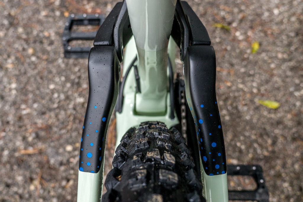 避震曲线是渐进式的,尤其是在接近避震末端的时候,它从2.9:1开始下降到2.275:1,几乎是一条直线。Orbea为每台车配备了0.2和0.4英寸的垫片,让你有可能稍微改变后胆行程,你也可以购买修补件,改变更大的行程。