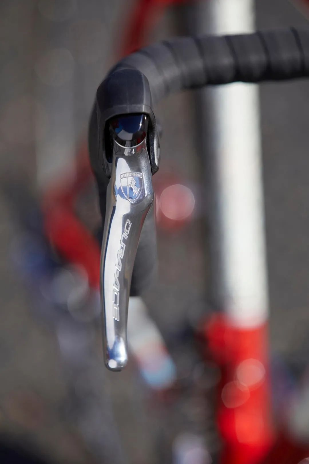 这个车另外一大特点是银色版Dura Ace 9100套件。不知情的小伙伴也许会误以为是Shimano发布的9100隐藏版本,而事实是这些银色套件全部是用手工从黑色打磨抛光而来。