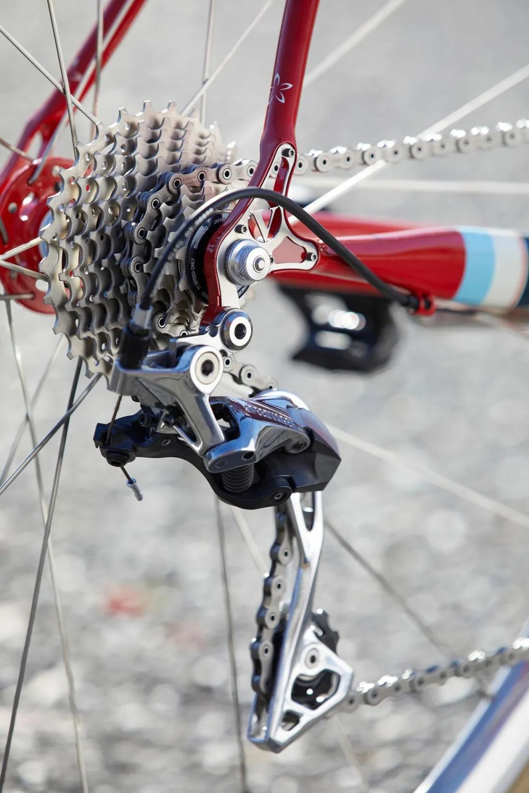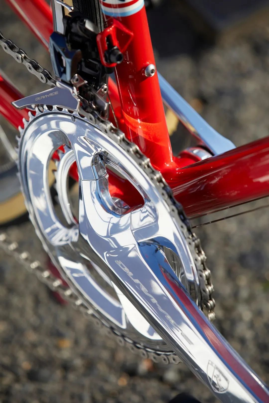 很难想象打磨抛光这些零件要耗费多少耐心和精力,让他们变成宛如珠宝的艺术品。能完成这一壮举正是CycloRetro工作室的功劳,这是一家专门打磨、修复、雕刻自行车零件的工作室,而所有Vanilla Classic统一搭配的银色版9100套件也都是由他们制作。如此,不仅保留了整车的复古风貌,也确保了其一流的现代变速性能。