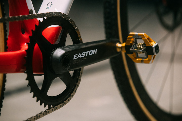 轮组也是来自Easton的EC90 SL,搭配Vittoria管胎(胎面取决于赛道)。