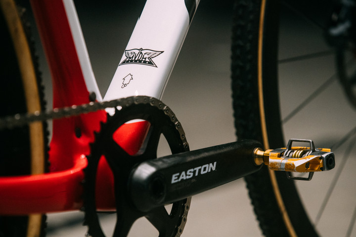 范登·汉姆在大多数比赛中使用170mm的Easton EC90曲柄和42T盘片。SRAM Force ETAP套件和10×33飞轮可以提供充足的齿比。