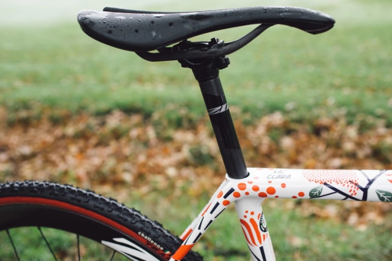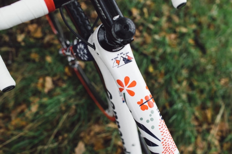 具有纪念意义的三座大山被印在上管。第一座是位于北加利福尼亚的Shasta山,来自俄勒冈州的Clara Honsinger经常在这里骑车;第二座是Rainier山,Clara Honsinger在这附近赢得了国家冠军;第三座是Hood山,非常靠近Clara Honsinger在俄勒冈州的家。