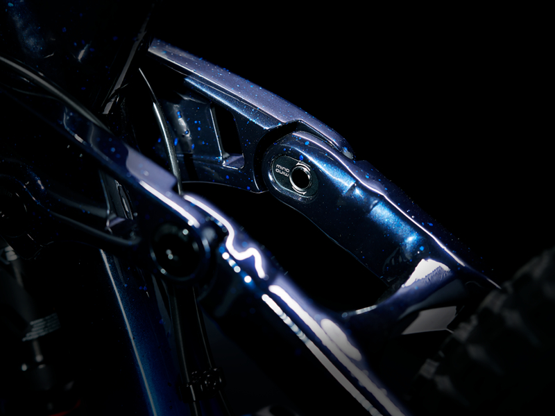 关于避震悬挂,Trek对于PRO车手的赛车,可以个性化地调整避震悬挂。现在对于广大玩家来说这种调整也得以普及。通过避震杠杆比调节垫片,可以将杠杆率在20%和25%之间进行调节,25%更适合应对高速路线,而20%则适合应对更崎岖、更具技术难度的赛道。