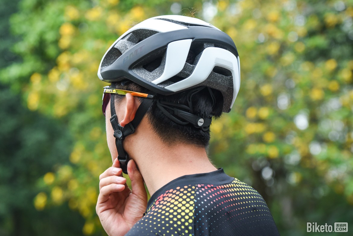 小编在佩戴PMT奥利普时,额部其实与内衬还隔有一定的空间,但坚实的头盔后部能够完整包裹后脑勺,使其佩戴起来十分稳固。具有PMT设计专利的新型Y型束带调节器用起来十分顺手,拨开卡扣进行调整,很快就能调节到最适合自己的束带长度,且与侧脸轮廓贴合得不粗,基本做到无感佩戴。