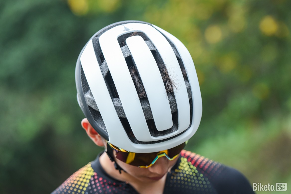 PMT奥利普的整体外观十分和谐,流畅的外形可以增加气动效益,科学设计的孔位能够优化风道,提升透气散热的效率,同时也让小编的呆毛不争气地飞舞在头盔外。不过转念一想,环法总冠军波加查在赛场上战胜对手时,头盔外不也飞着一撮呆毛,呆毛越多功率越高嘛(误)。