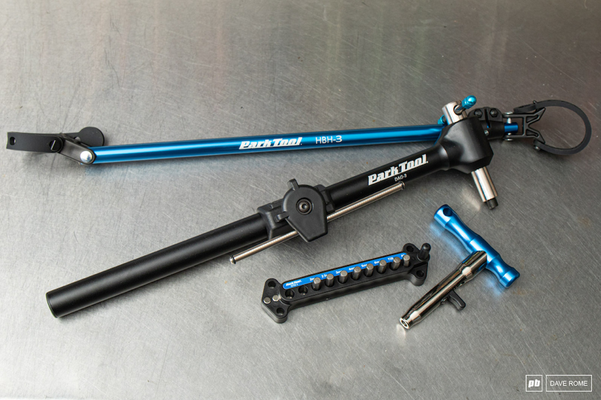 最后,Park Tool也加入了Feedback Sports的行列,推出了一款通用手把(HBH-3)。这个简单的装置可以用于各种各样的任务,比如将车把固定在一个的位置,这样就可以对发挥重力对刹车排气的作用。43美元(约合278人民币)的价格似乎很高,但它是为工作室创造的。