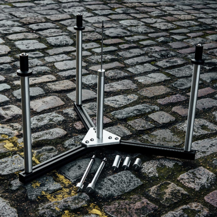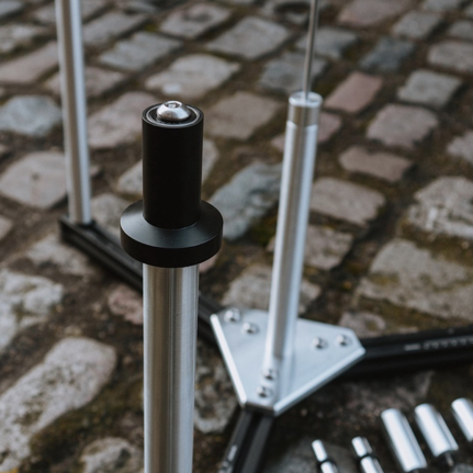 该支架专为专业轮毂制造商而设计,旨在支撑几乎所有轮圈和花鼓,以方便安装辐条。它可以通过快速调整支架以适应各种了轮圈直径和花鼓类型,也可以完全折叠以方便收纳。该工具由铝和不锈钢制成,可以承受专业人员的日常使用,同时轮圈由倾斜的轮圈滚轮进行精密支撑,该滚轮使用可打开轴承盖的轴承。