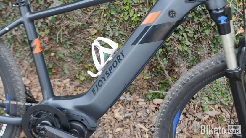 相比于传统山地车,粗壮的下管和中置电机辨识度很高,车架采用6系铝合金,并不是走超级轻量化路线,但和国内很多同类产品相比,头管、五通处精心打磨的焊点可以看出整车的诚意,流畅的线条也削弱了粗壮五通所带来的臃肿观感,算是比较讲究。