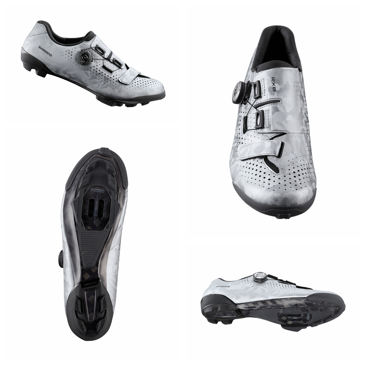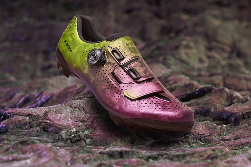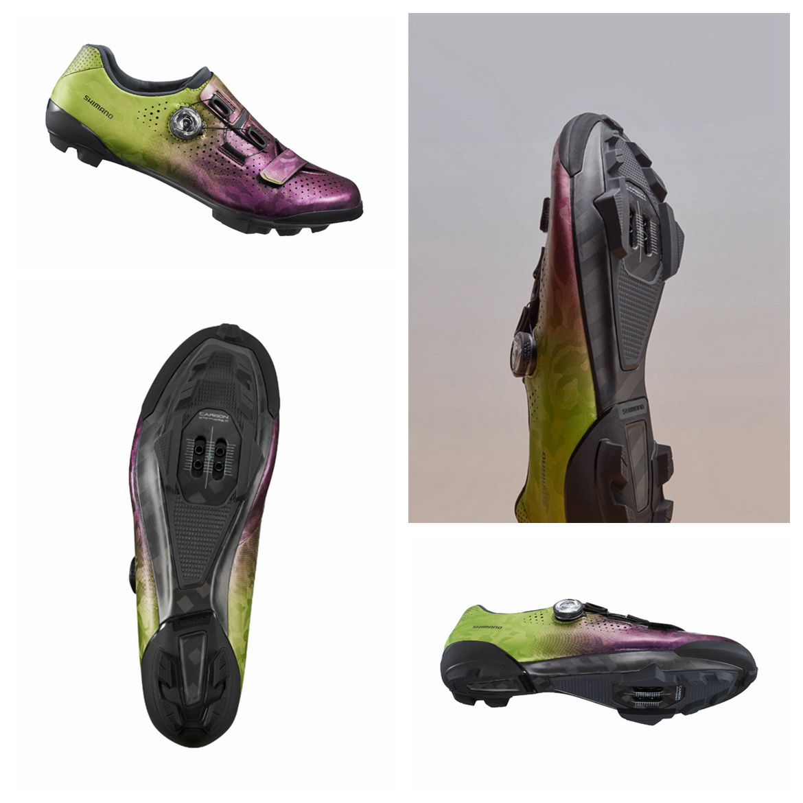随着 GRAVEL车型的流行,Shimano也推出了专用的 GRAVEL 竞赛骑行鞋,由于采用了碳纤复合外底材质,这双使用山地锁踏的锁鞋竟然比XC9还轻了65克,和公路鞋差不多的重量了,在涂装上也使用了带有迷彩暗花的绿紫渐变涂装,还有亮银色和百搭耐脏的黑色可选,颜值一流。